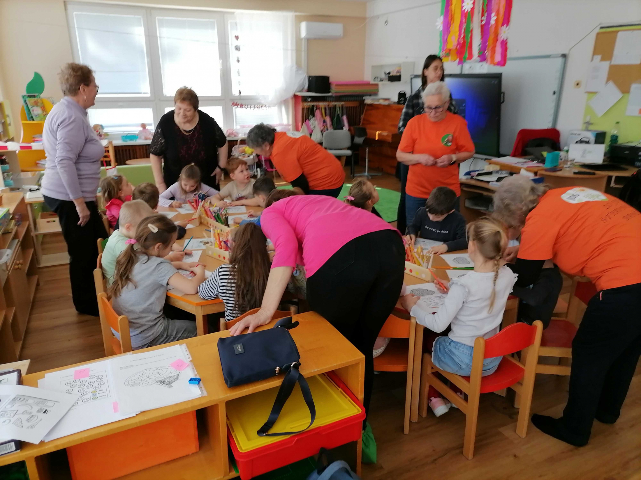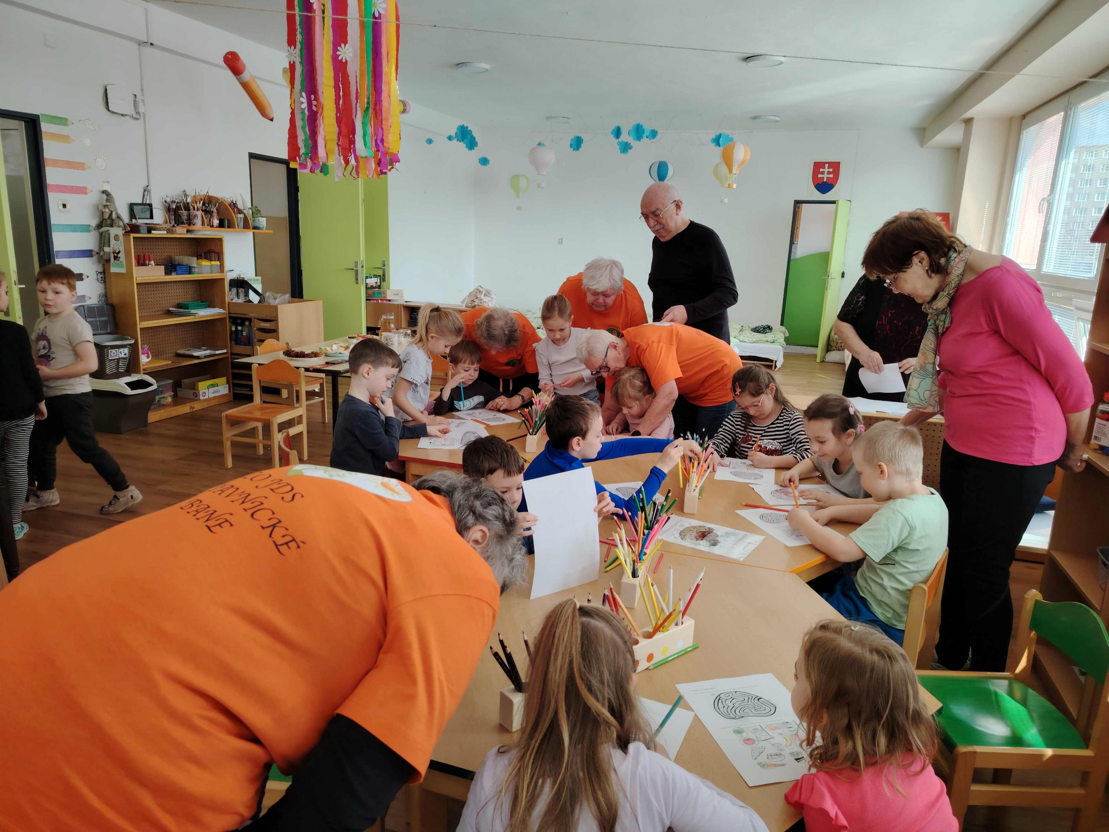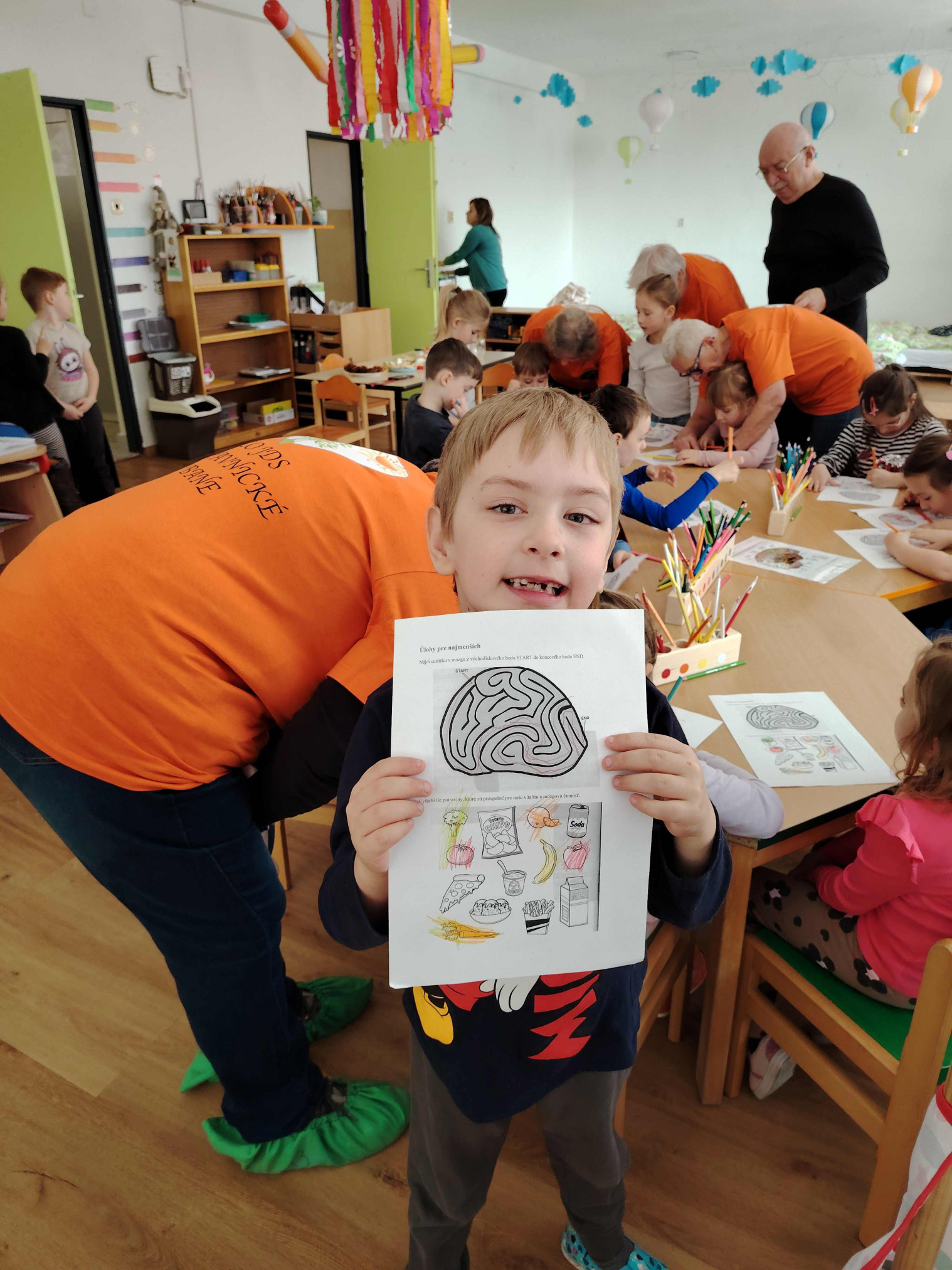 Aj tento rok si naši seniori s lektorkou Vierkou Chladnou zopakovali návštevu v MŠ 1.Mája. Zapojili sme sa spoločne do medzinárodnej akcie Týždeň mozgu, čo je medzinárodná akcia, ktorú každoročne organizuje Slovenská Alzheimerova spoločnosť. S pani učiteľkami sme deťom pripravili zaujímavý tvorivý deň. Hravou formou sme s deťmi riešili nasledovné úlohy: