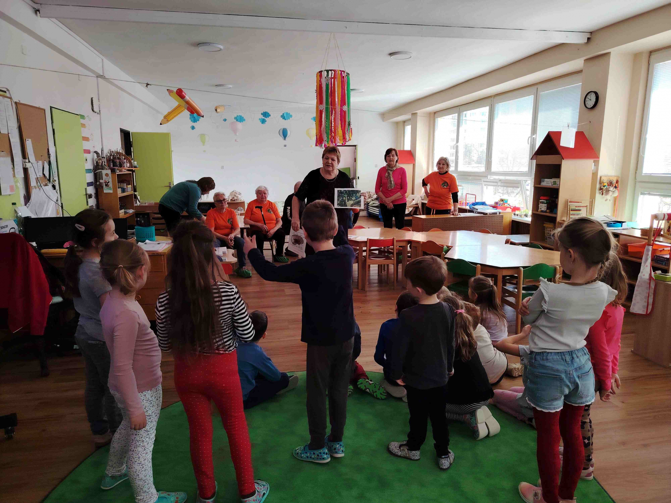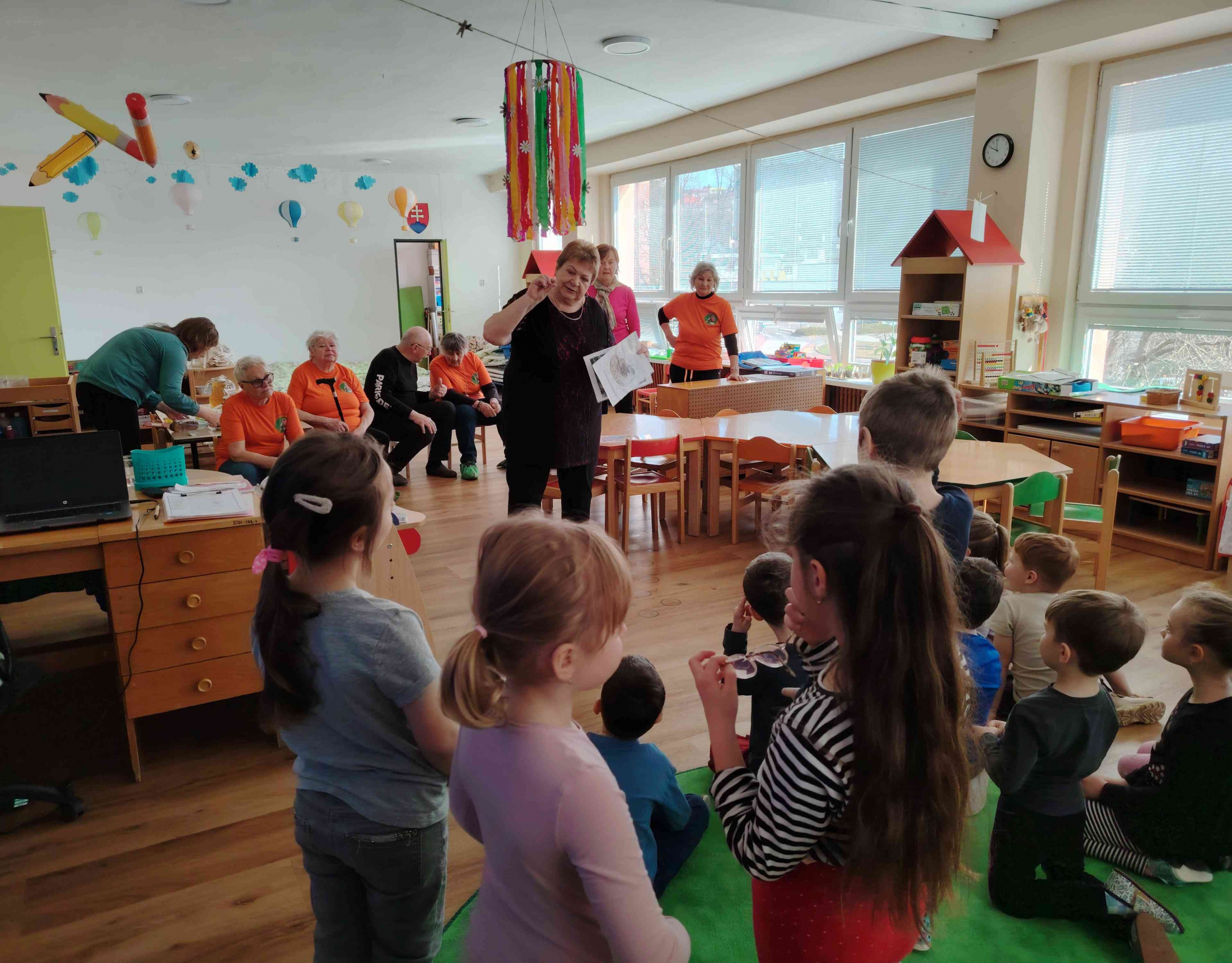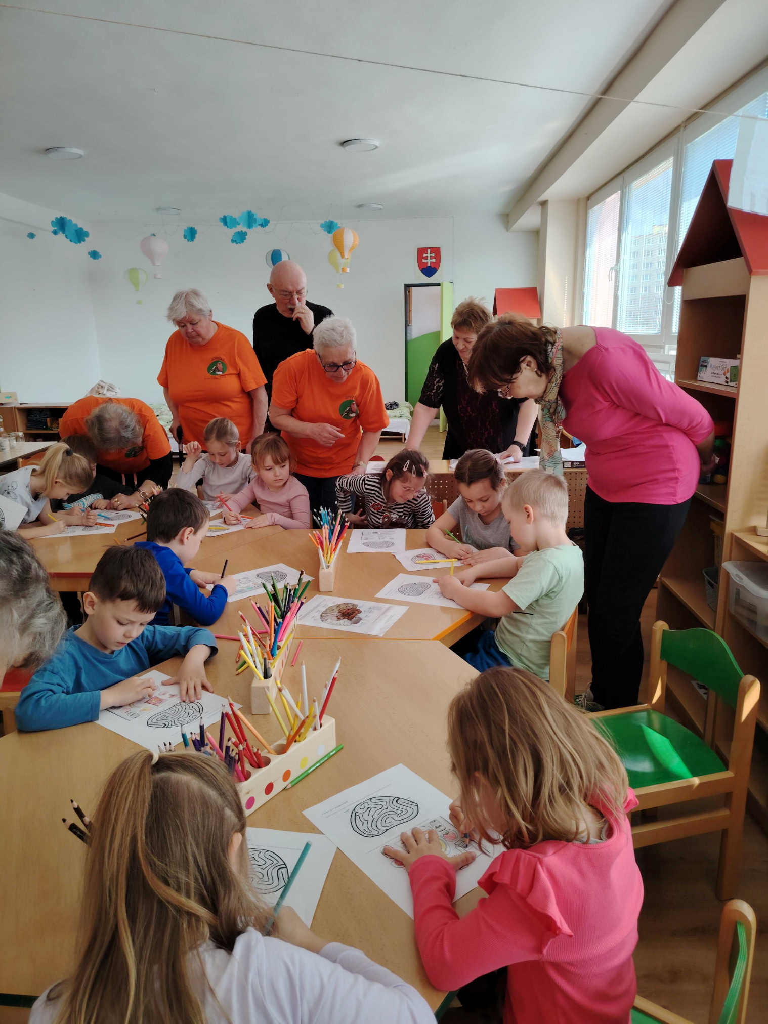 Aj tento rok si naši seniori s lektorkou Vierkou Chladnou zopakovali návštevu v MŠ 1.Mája. Zapojili sme sa spoločne do medzinárodnej akcie Týždeň mozgu, čo je medzinárodná akcia, ktorú každoročne organizuje Slovenská Alzheimerova spoločnosť. S pani učiteľkami sme deťom pripravili zaujímavý tvorivý deň. Hravou formou sme s deťmi riešili nasledovné úlohy: